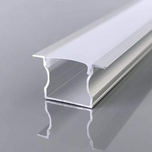 Vgradni alu LED profil z zaključki in mlečnim pokrovom, 2m, eloksiran je primeren za montažo na vseh ravnih površinah in je dobavljiv v 2m kosu. V profil je možno vstaviti LED trak do 12mm širine.